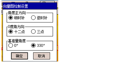7.向量圖繪制可以設置正方向為順時針或逆時針;可以設置0度角方向為十二點或三點鐘方向,基準量角度為330°或0°,可以設置下表類型和電流電壓半徑比,符合各種用戶習慣;