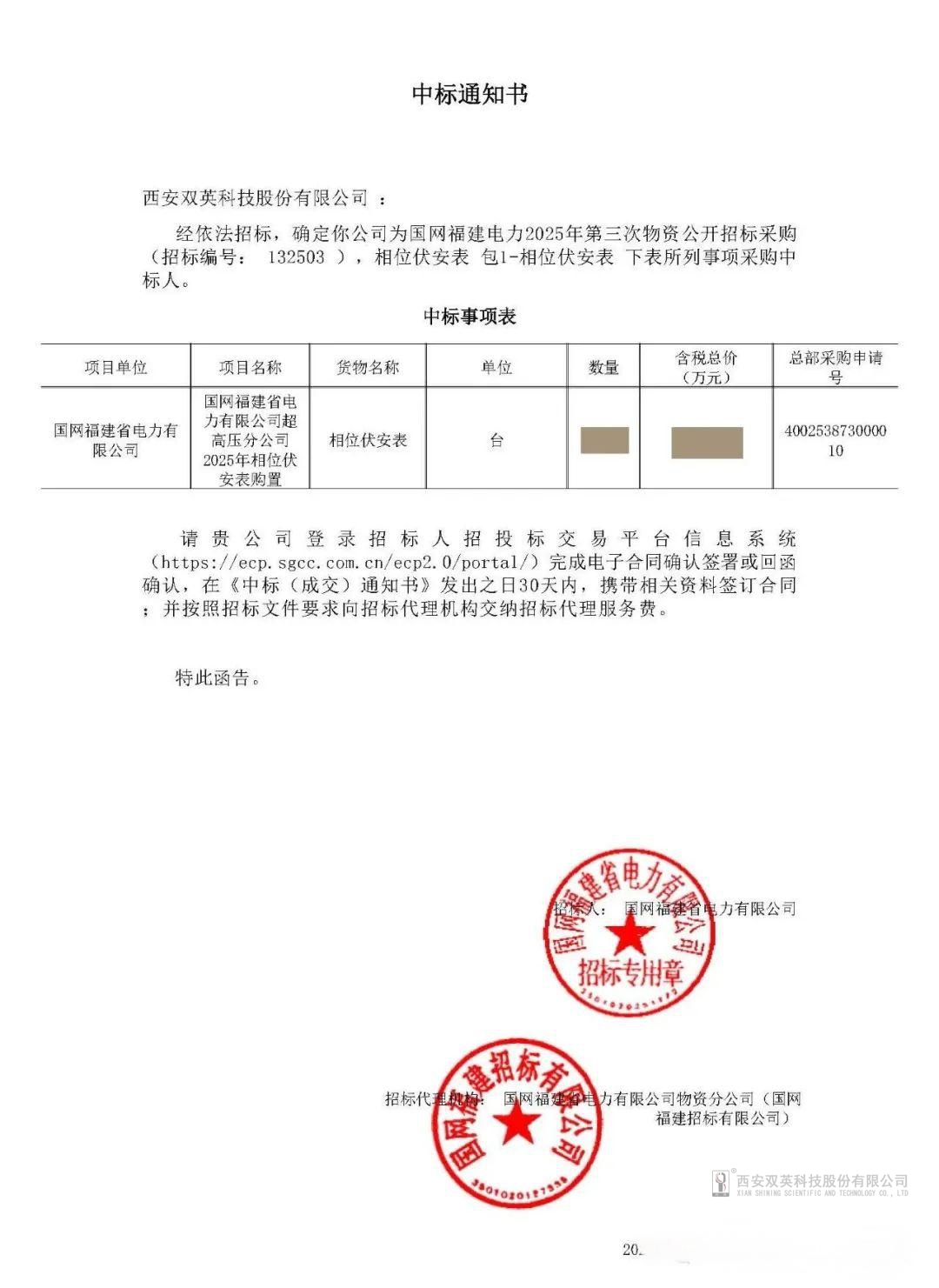 西安雙英中標(biāo)國網(wǎng)福建電力2025年第三次物資公開招標(biāo)采購項目-相位伏安表